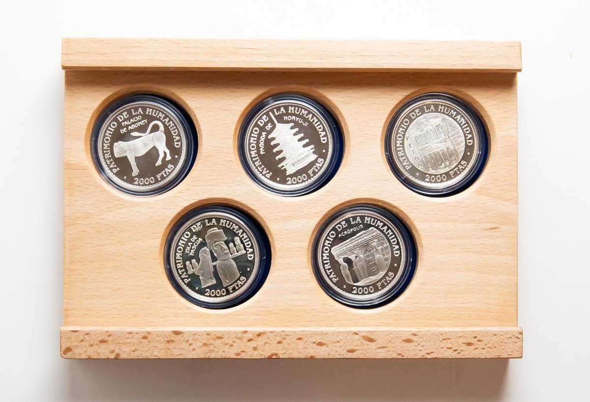 JUAN CARLOS I (1975-2014). Estuche formado por 5 monedas de 2000 Pesetas. Patrimonio Mundial. 1997. FNMT. Peso y medida teóricos por monedas: 27,00g/40mm. Incluye estuche original en madera y certificados de autenticidad. Plata de 0,925 milésimas. PROOF. A EXAMINAR.