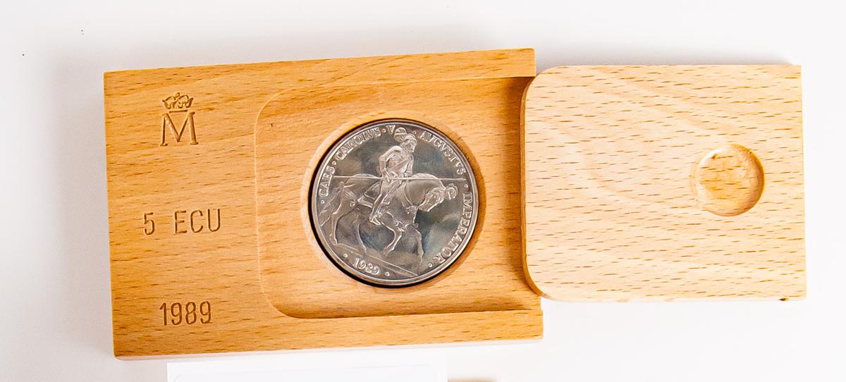 JUAN CARLOS I (1975-2014). 5 Ecu. (Ar. 33,62g/42mm). Carolvs V. 1989. FNMT. FDC. Incluye estuche original y certificado de autenticidad.