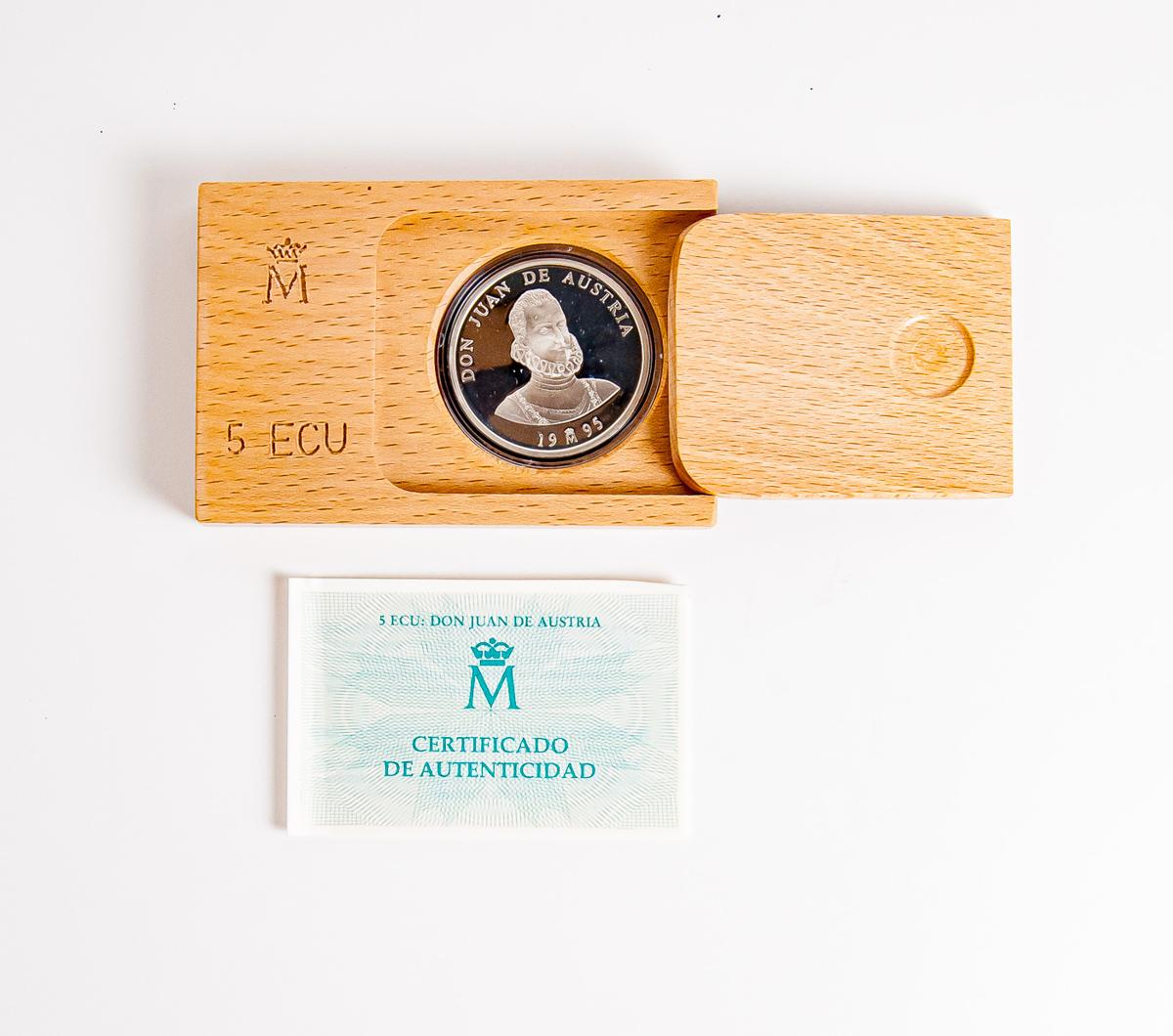JUAN CARLOS I (1975-2014). 5 Ecu. (Ar. 33,62g/42mm). La Marina Española. 1995. FNMT. FDC. Incluye estuche original y certificado de autenticidad.