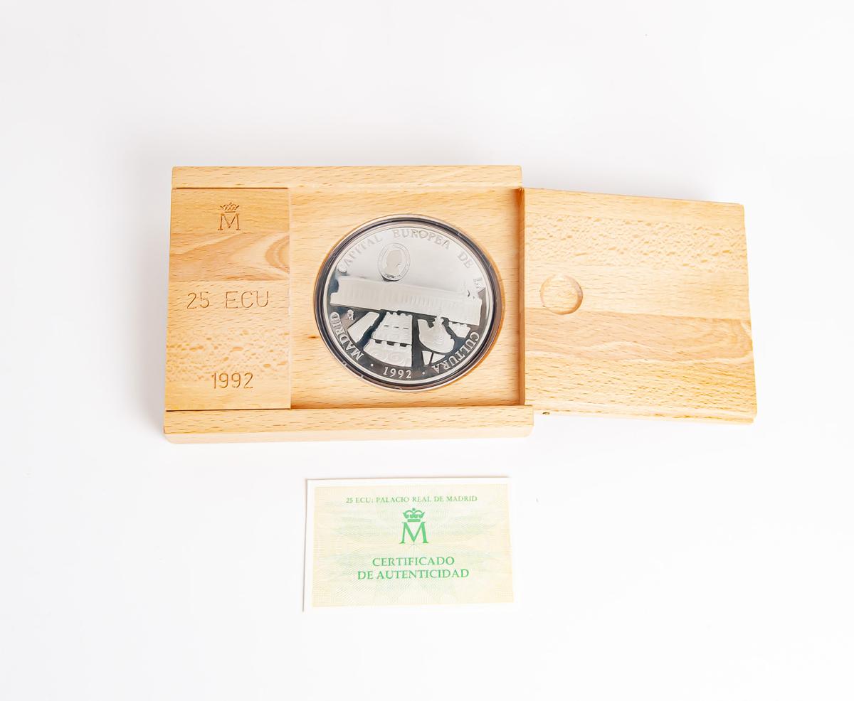 JUAN CARLOS I (1975-2014). 25 Ecu (Ar. 168,75g/73mm). Madrid Capital Europea de la Cultura. 1992. FNMT. FDC. Incluye estuche original y certificado de autenticidad. Tirada de 15.000 unidades.