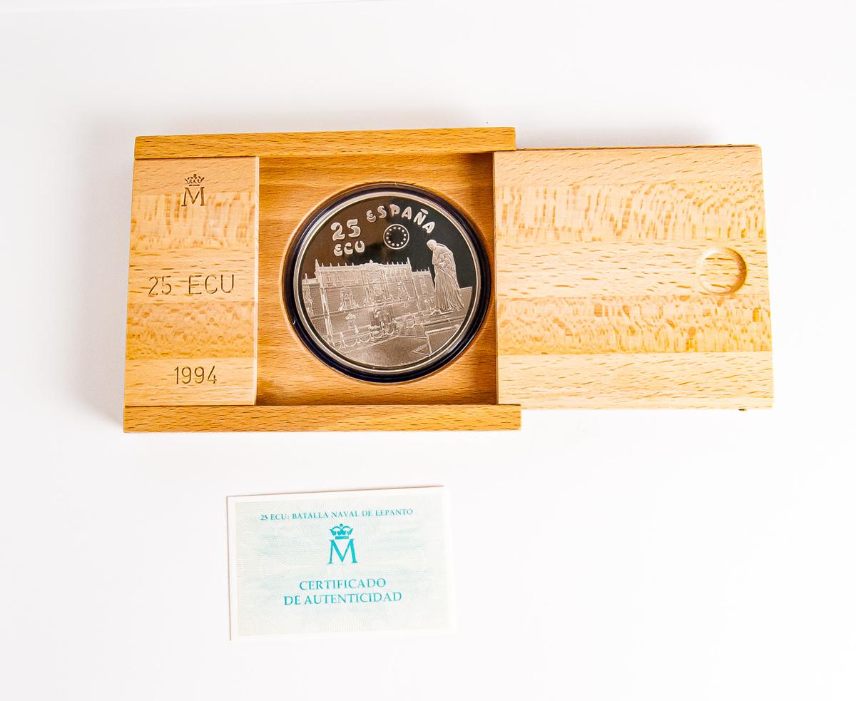 JUAN CARLOS I. 25 Ecu. (Ar. 168,75g/73mm). Serie Cervantes-Don Quijote. 1994. FNMT. FDC. Presentada en estuche oficial y con certificado.