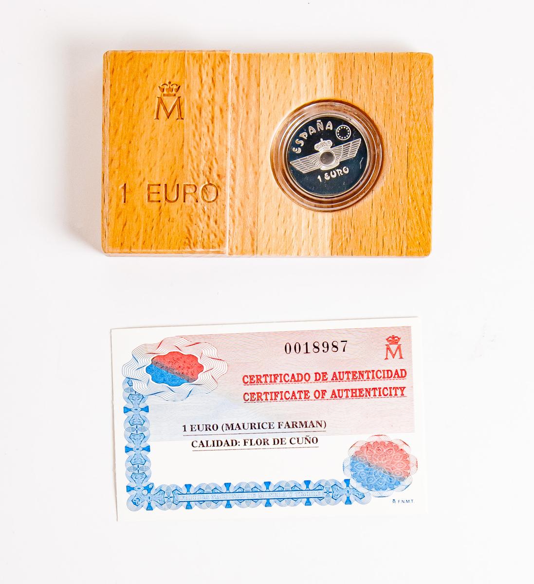 JUAN CARLOS I (1975-2014). 1 Euro. (Ar. 6,72g/24mm). 1997. Maurice Farman. FDC. Incluye estuche original y certificado de autenticidad de la FNMT. 50 mil ejemplares.