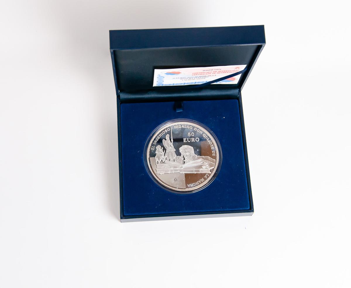 JUAN CARLOS I (1975-2014). 50 Euros (Ar. 168,75g/73mm). Don Quijote de la Mancha. 2005. FNMT. PROOF. Incluye estuche original y certificado de autenticidad. Tirada de sólo 12.000 unidades.