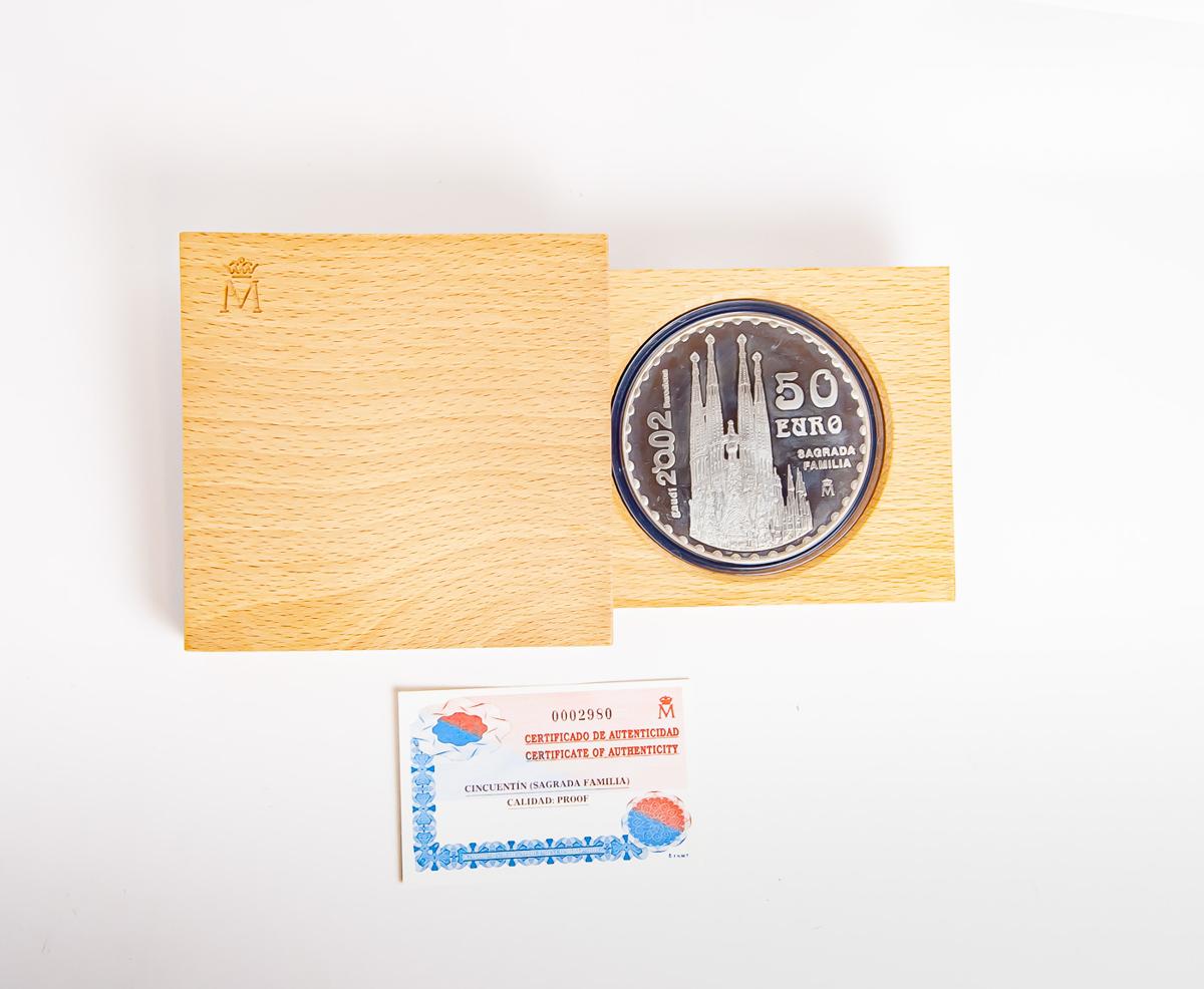 JUAN CARLOS I (1975-2014). 50 Euros (Ar. 168,75g/73mm). Sagrada Familia.Gaudí. 2012. FNMT. PROOF. Incluye estuche original y certificado de autenticidad. Tirada de sólo 8.000 unidades.
