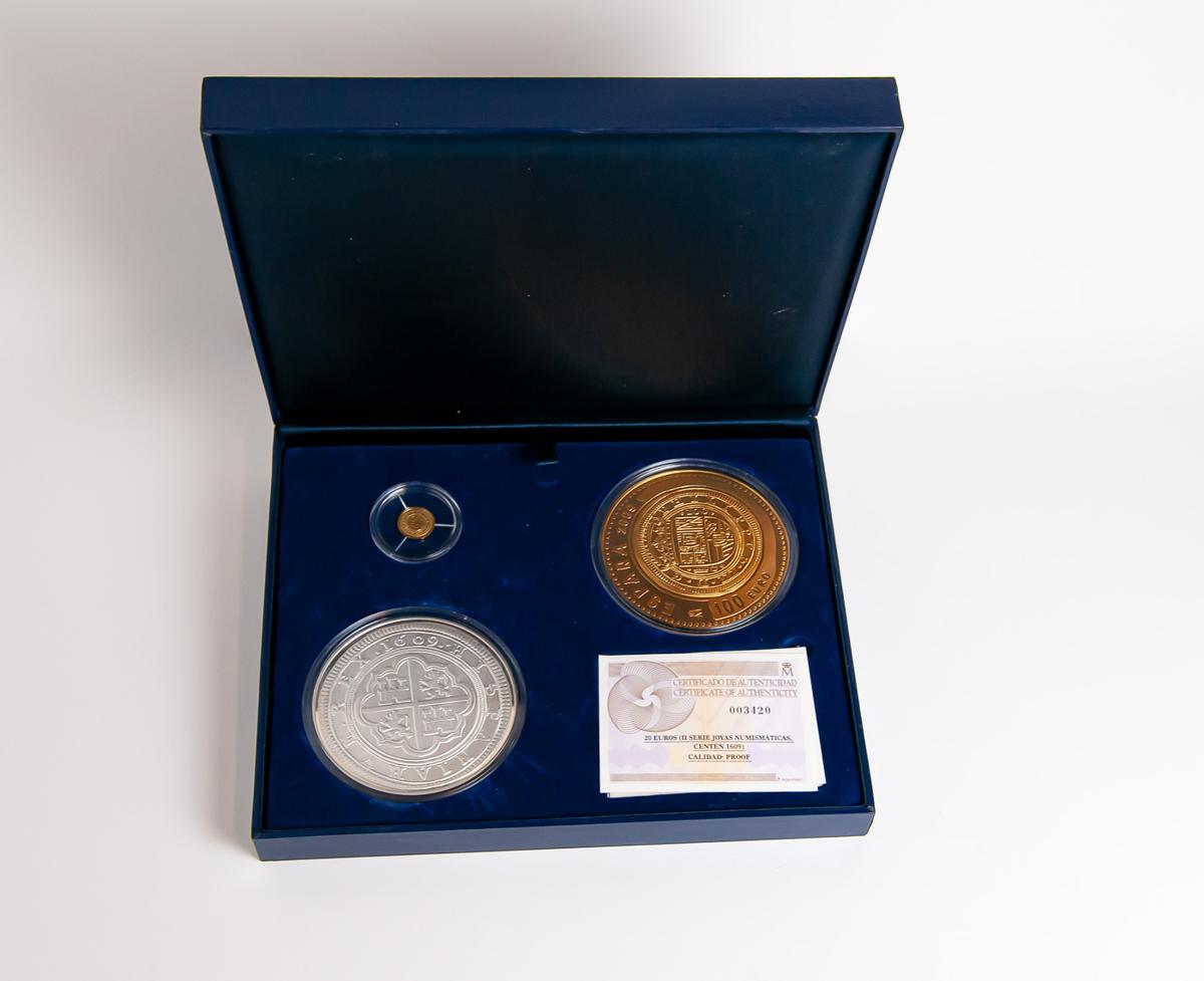 JUAN CARLOS I (1975-2014). Serie Joyas de la Numismática. Centén y Cinquentín. Conjunto de 3 monedas con valores de 100, 50 y 20 Euros. 2009. FNMT. PROOF. Incluye estuche original y certificados de autenticidad.