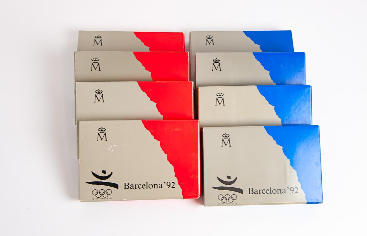 JUAN CARLOS I (1975-2104). Conjunto de 8 estuches de 2000 Pesetas acuñados en 1990. Serie Barcelona 92. todos con diferente temática: Castellers, Arquero Prehistórico, Emblema Oficial y Fúbol en versión FDC y PROOF. Incluyen estuches originales y certificados de autenticidad. A EXAMINAR.