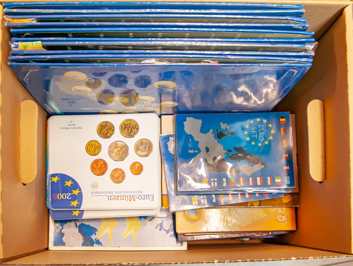 EUROS. Magnífico conjunto de euros y divisores repartidos en diferentes carteras y álbumes con una gran variedad de países y fechas. Valor facial aproximado del conjunto de más de 500€. Diferentes estados de conservación. A EXAMINAR.