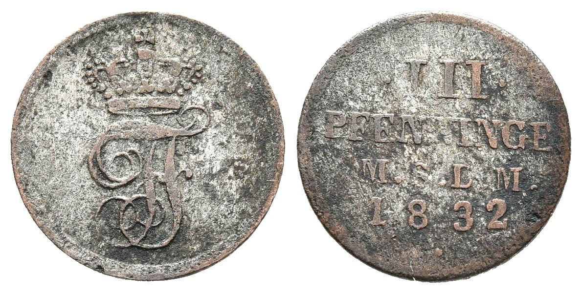 ALEMANIA (Estados Alemanes). 3 Pfennig. (Ve. 0,44g/12mm). 1832. Federico Francisco I. Gran Ducado de Mecklemburgo-Schwerin. (Km#282). MBC. Escasa.