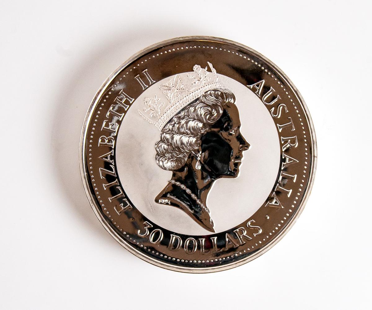 AUSTRALIA. 30 Dollars. (Ar. 1kg/100mm). 1992. Kookaburra. (Km#181). Plata pura. PROOF. Sólo 1000 unidades acuñadas.