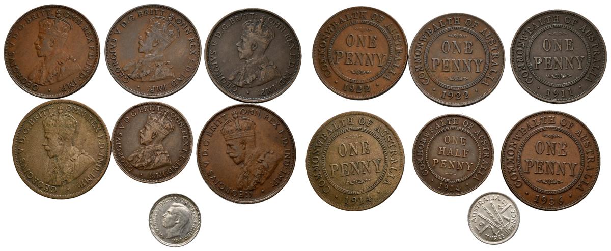 AUSTRALIA. Bonita conjunto de 7 piezas, mayoría en cobre, de diferentes módulos y acuñadas entre 1911 y 1942. Diferentes estados de conservación. A EXAMINAR.