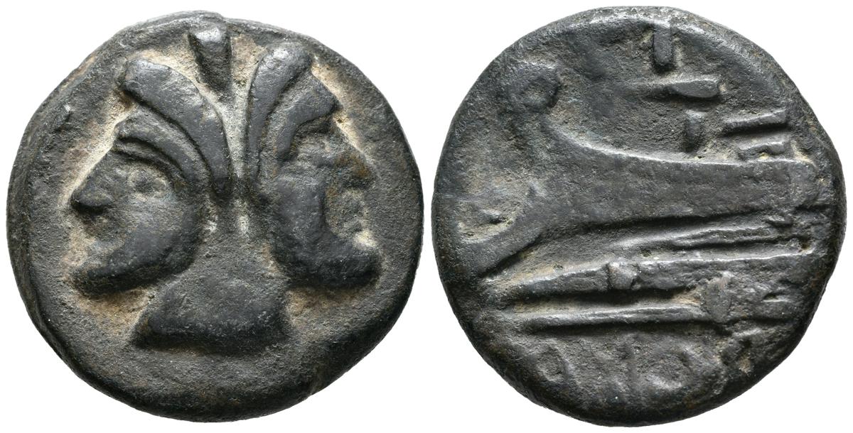 ACUÑACIONES ANONIMAS. As de imitación hispánica. (Ae. 29,45g/33mm). 100 a.C. Roma. (FAB-R42). Anv: Cabeza bifronte laureada de Jano, encima: I. Rev: Proa a derecha, encima: I, debajo leyenda: AMOR. MBC.