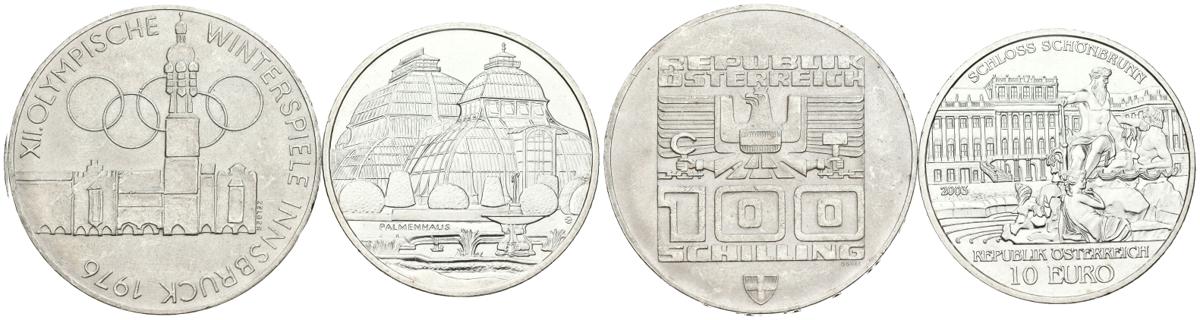 AUSTRIA. Conjunto de 2 monedas de plata de 100 Schilling y 10 Euros acuñados en 1976 y 2003 respectivamente. Alto nivel de conservación. A EXAMINAR.