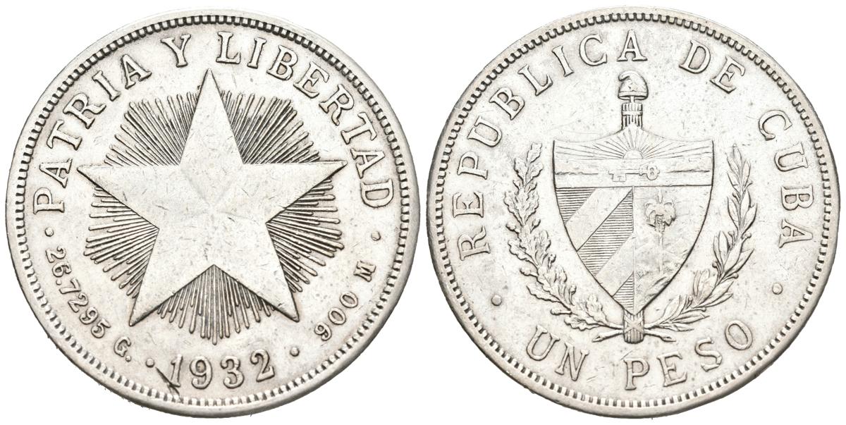 CUBA. 1 Peso (Ar. 26,60g/38mm). 1932. (Km#15.2). MBC+.