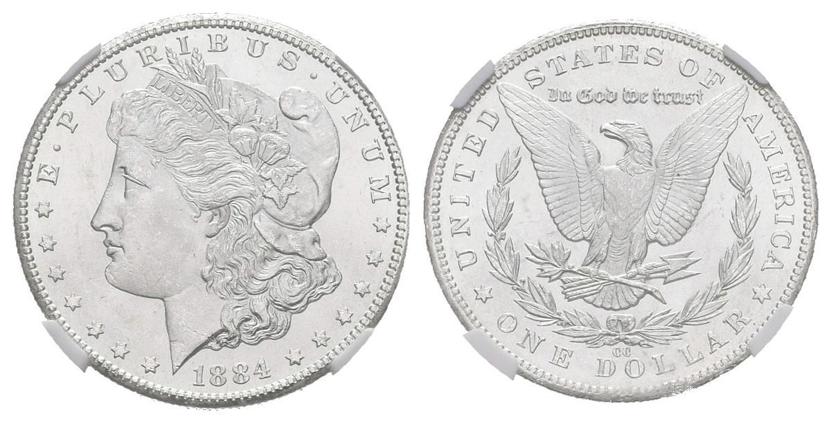 ESTADOS UNIDOS. 1 Dollar (Ar. 26,73g/38mm)*. 1884. Carson City CC. (Km#110). MS 64. Encapsulado por NGC . *Peso y medida teórico.