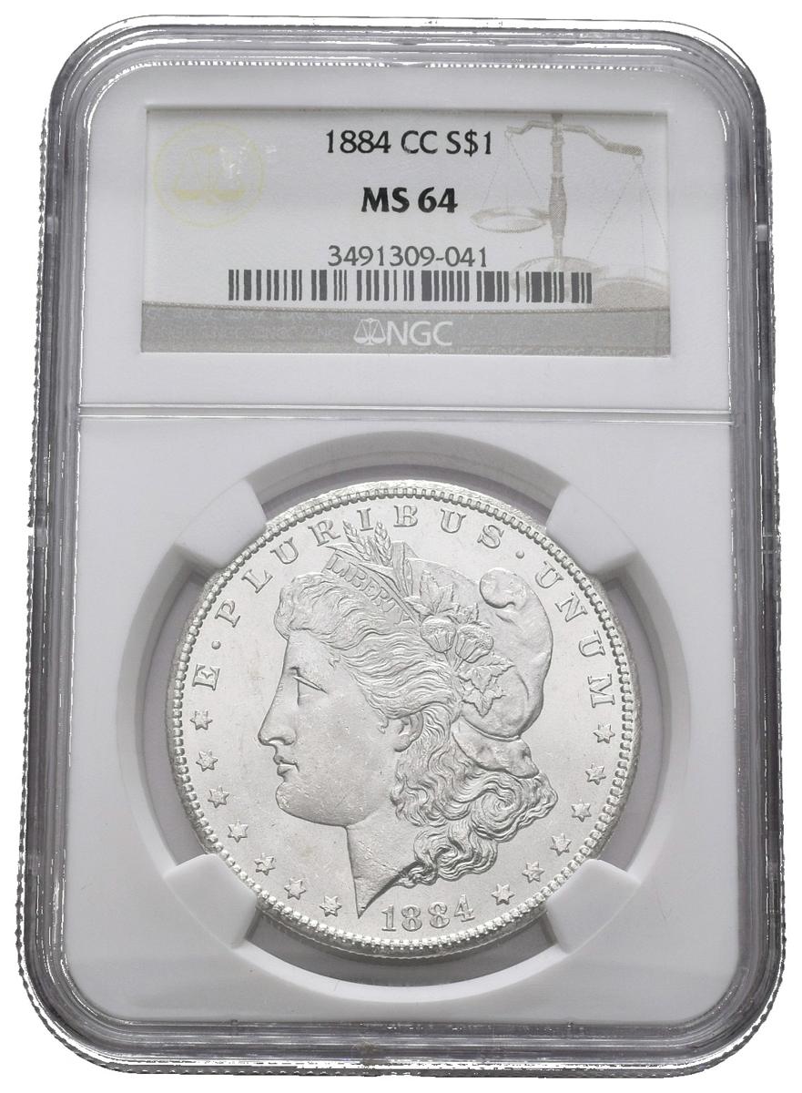 ESTADOS UNIDOS. 1 Dollar (Ar. 26,73g/38mm)*. 1884. Carson City CC. (Km#110). MS 64. Encapsulado por NGC . *Peso y medida teórico.