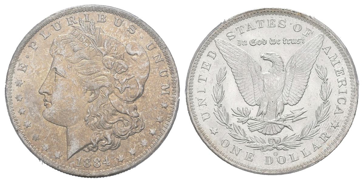 ESTADOS UNIDOS. 1 Dollar (Ar. 26,73g/38mm)*. 1884. Nueva Orleans O. (Km#110). MS 62. Encapsulado por PCGS . *Peso y medida teórico.