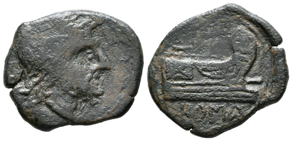 ACUÑACIONES ANONIMAS. Semis. (Ae. 7,20g/22mm). 211-206 a.C. (Crawford 56/3 var). Anv: Cabeza de Saturno a derecha, detrás S. Rev: Proa a derecha, encima S y símbolo, debajo: ROMA. MBC-.