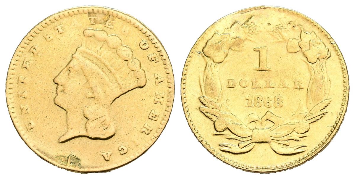 ESTADOS UNIDOS. 1 Dollar. (Au. 1,67g/15mm). 1868. Philadelphia. (Km#86). MBC-. Usada como joya. Reproducción de joyería de 800 milésimas.