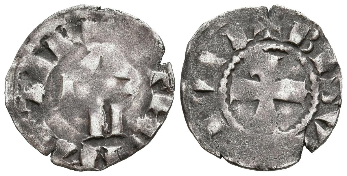 FRANCIA, Arzobispado de Besançon (Anónimo). Denier á la Main Benissante. (Ar. 1,18g/18mm). 1200-1300. (Poey D'Avant 5365). Anv: Mano, alrededor leyenda: PTHOMARTIR. Rev: Cruz, alrededor leyenda: BISUNTIUM. MBC.
