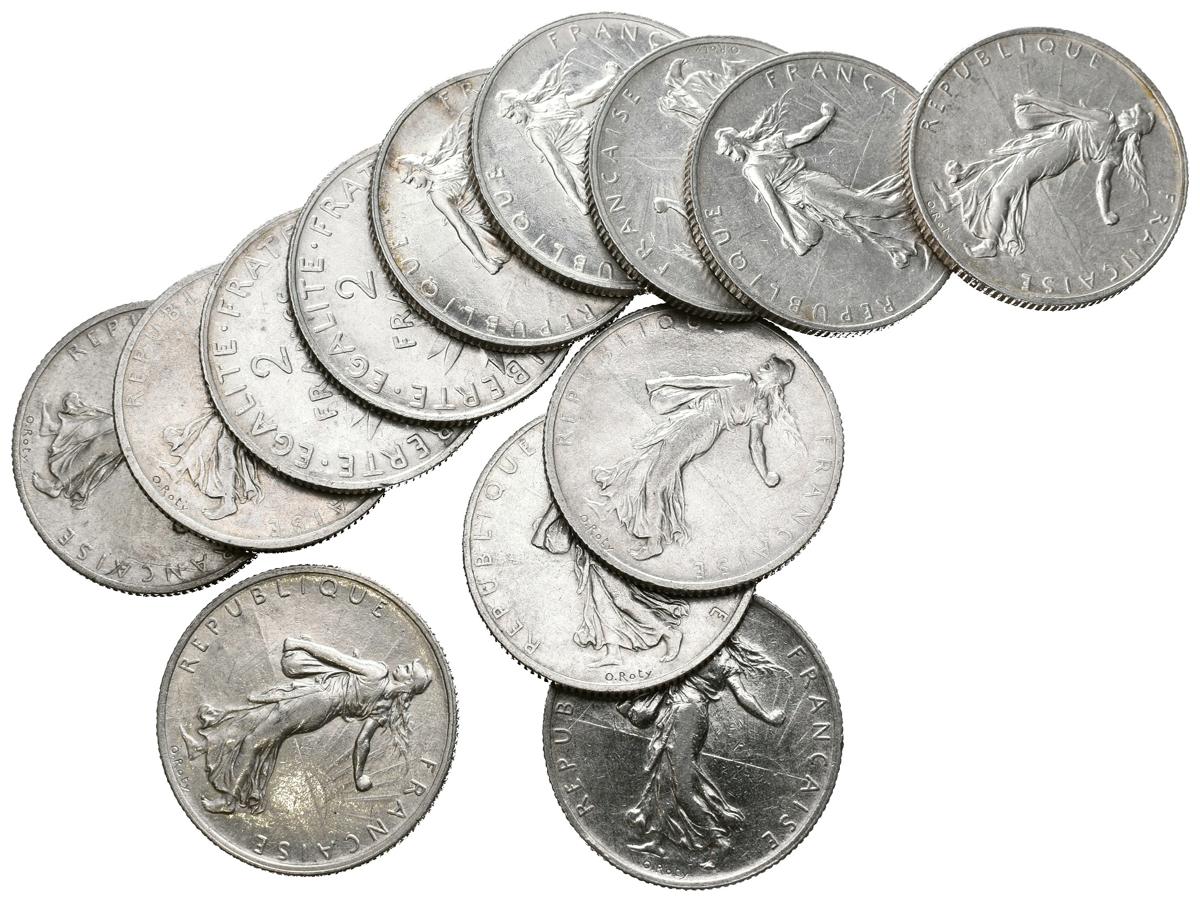 FRANCIA. Bonito conjunto formado por 13 monedas en plata de 2 Francs todas de diferentes fechas y acuñadas entre 1899 y 1920. Diferentes estados de conservación. A EXAMINAR.
