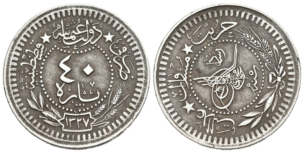 IMPERIO OTOMANO, Mehmed V. 40 Para. (Ar. 5,98g/24mm). 1327-1336H. (Km#828). MBC+.