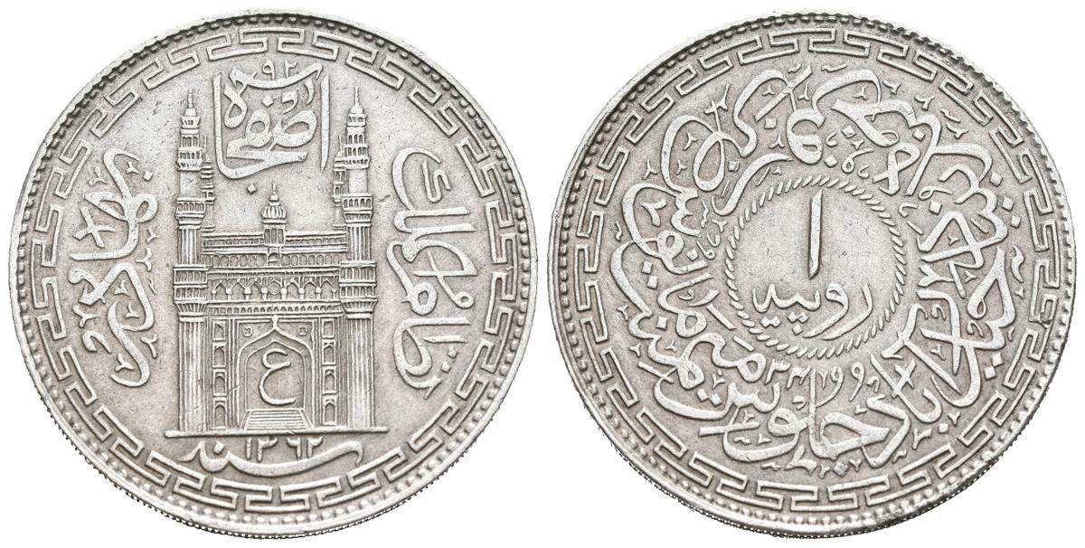 INDIA. 1 Rupia (Ar. 11,18g/31mm). 1911 (1330H). Hyderabad. (Km#Y-53a). EBC.