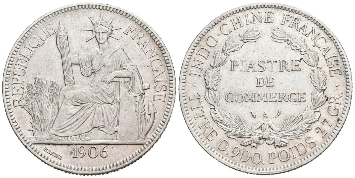 INDOCHINA. Piastre de Commerce. (Ar. 26,90g/39mm). 1906. París A. (Km#5). MBC+.