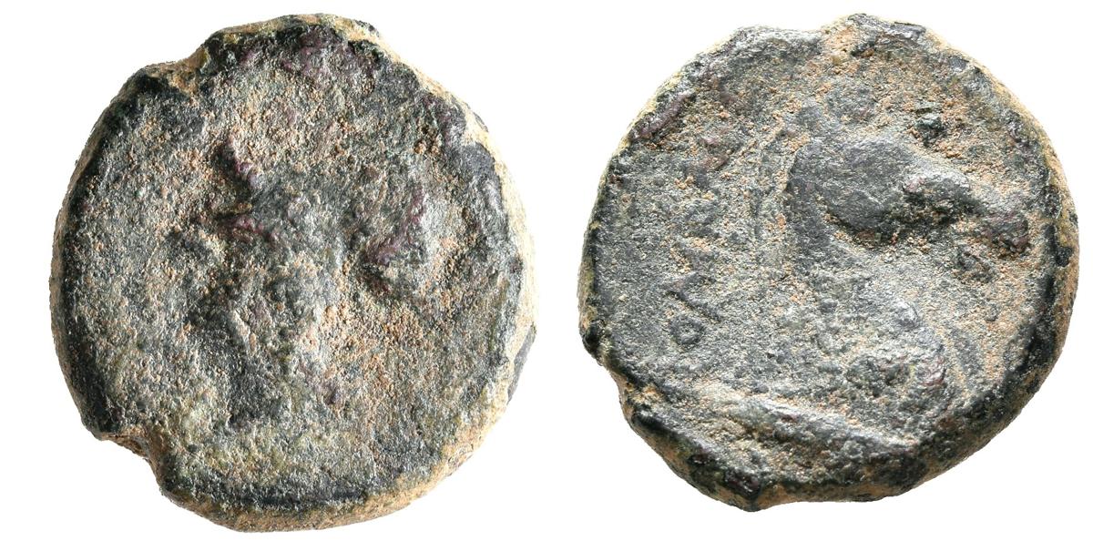 ACUÑACIONES ANONIMAS. Litra. (Ae. 5,32g/18mm). 260 a.C. Roma. (Crawford 17/1a). Anv: Cabeza con casco de Minerva a izquierda. Rev: Cabeza de caballo a derecha, detrás leyenda: ROMANO. MBC-.