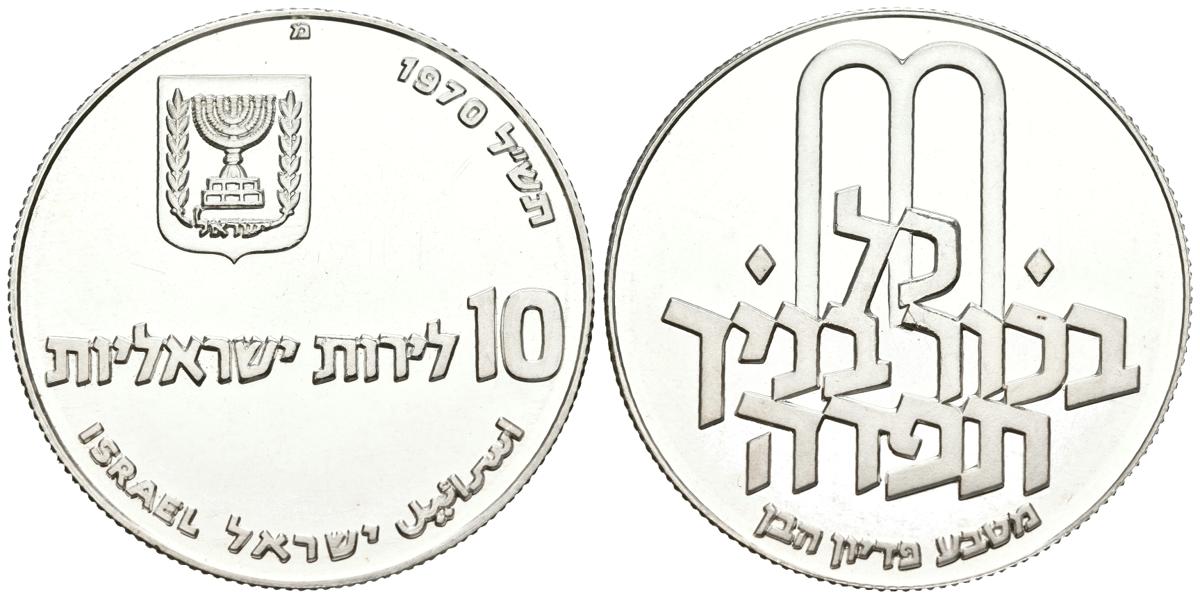 ISRAEL. 10 Lirot. (Ar. 26,62g/37mm). 1970. San Francisco. Pidyon Haben. Letra fenicia Mem en el anverso. (Km#56). SC.