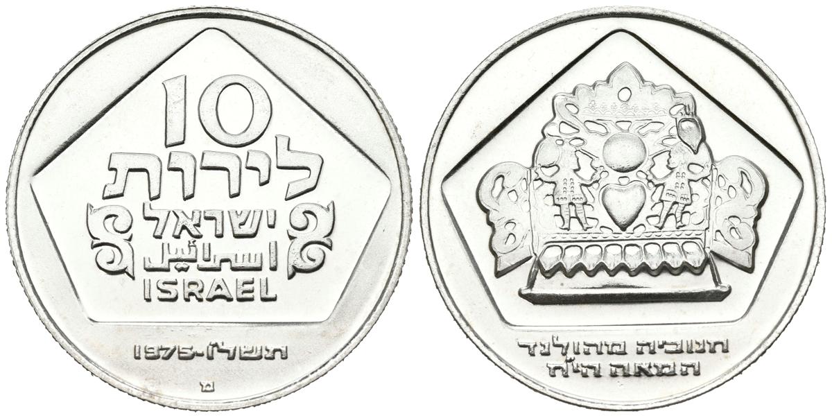 ISRAEL. 10 Lirot. (Ar. 19,92g/34mm). 1975. Jerusalén. (Km#84.1). Canto estriado. SC.