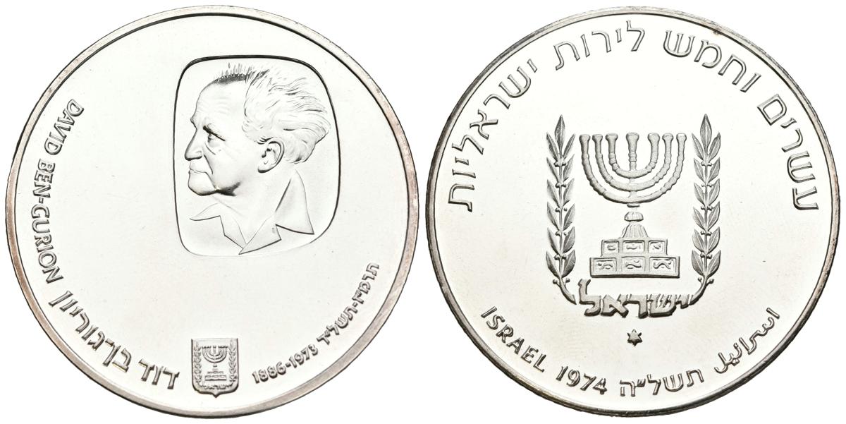 ISRAEL. 25 Lirot. (Ar. 26,14g/37mm). 1974. Jerusalén. David Ben Gurion. (Km#79). SC.