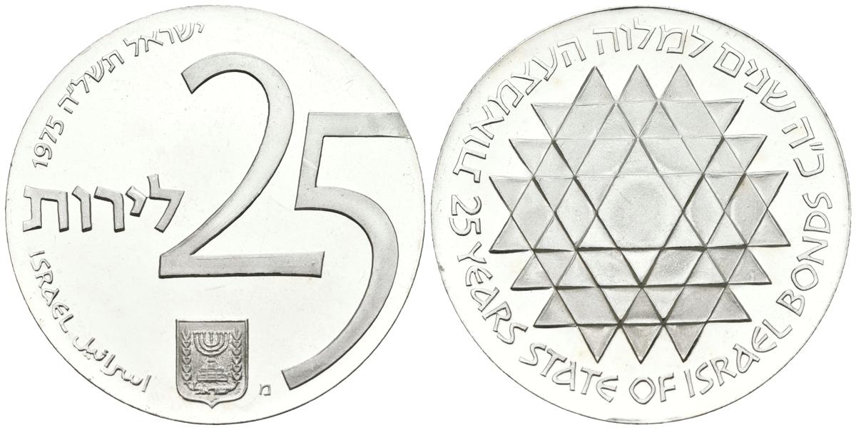 ISRAEL. 25 Lirot. (Ar. 30,00g/40mm). 1975. Jerusalén. Independence Day. Israel Bonds (Km#81). SC.
