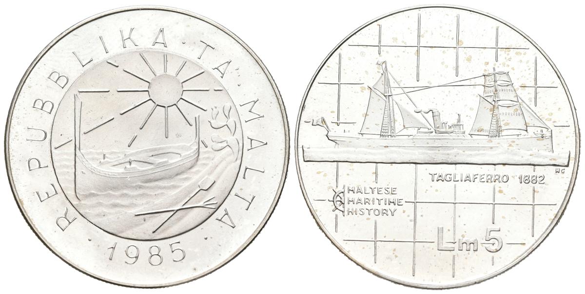 MALTA. 5 Liri (Ar. 19,93g/35mm). 1985. (Km#72). SC-.