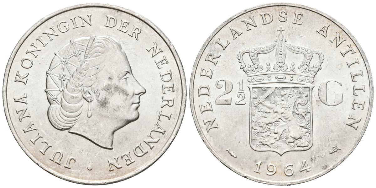ANTILLAS HOLANDESAS. 2 1/2 Gulden. (Ar. 25,00g/38mm). 1964. Reina Juliana. (Km#7). EBC+.