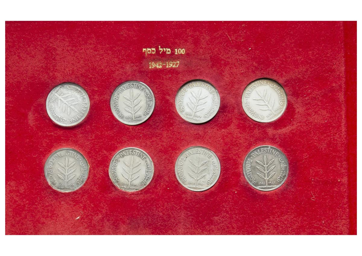 PALESTINA. Espectacular colección expuesta en antiguo álbum y compuesta por 59 monedas con valores comprendidos entre 1 y 100 Mils acuñados entre 1927 y 1946. Ninguna pieza repetida. Destacan 8 piezas de 100 Mils y 8 de 50 Mils en plata. Magnífico nivel de conservación en general. A EXAMINAR.