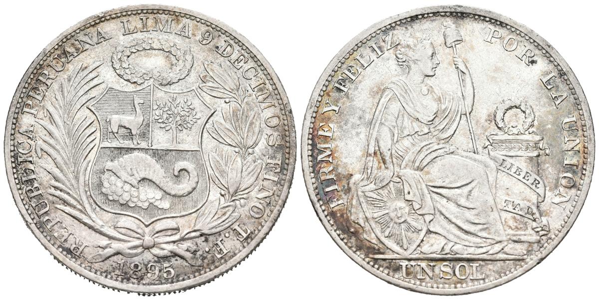 PERU. 1 Sol. (Ar. 24,76g/37mm). 1895. Lima TF. (Km#196.26). MBC+.