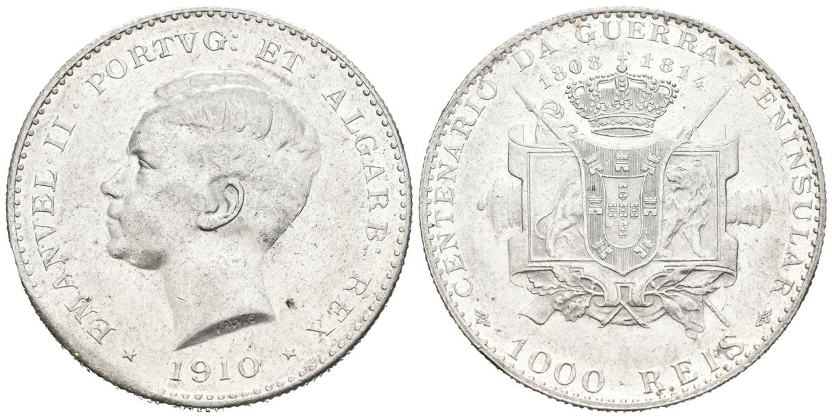 PORTUGAL. 1000 Reis (Ar. 24,86g/37mm). 1910. Manuel II. Centenario de la Guerra Peninsular. (Km#558). MBC+.