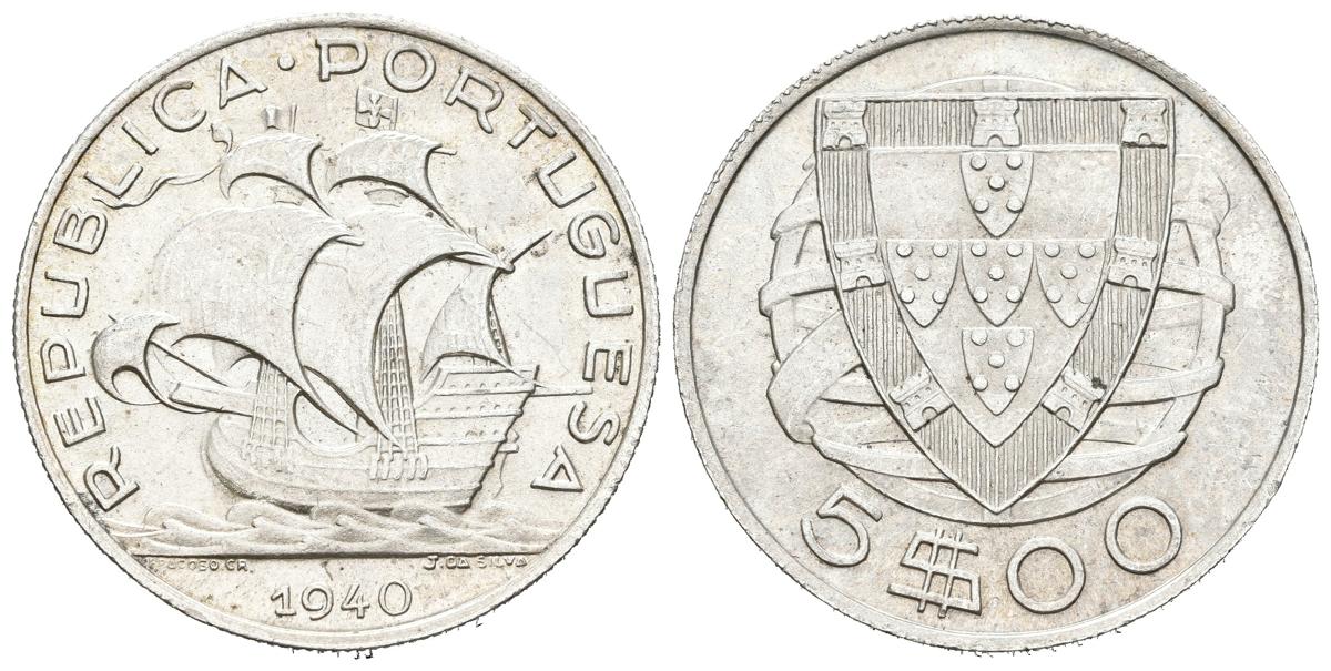 PORTUGAL. 5 escudos. (Ar. 7,01g/25mm). 1940. (Km#581; Gomes 35.05). EBC.