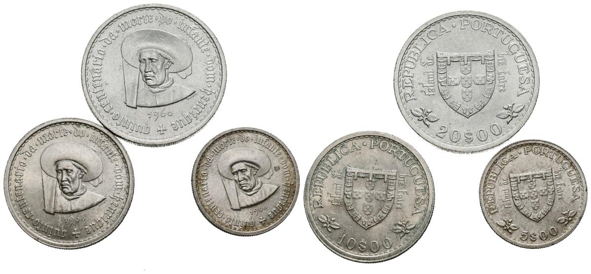 PORTUGAL. Conjunto compuesto por 3 monedas de plata de 500, 750 y 1000 Escudos. Descobrimentos Renascimento 1983. EBC+. A EXAMINAR.