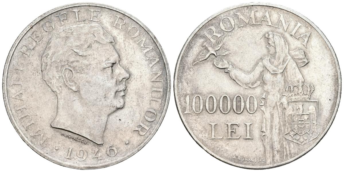 RUMANIA. 10.000 Lei. (Ar. 25,09g/37mm). 1946. Bucarest. Miguel I. (Km#71). MBC.