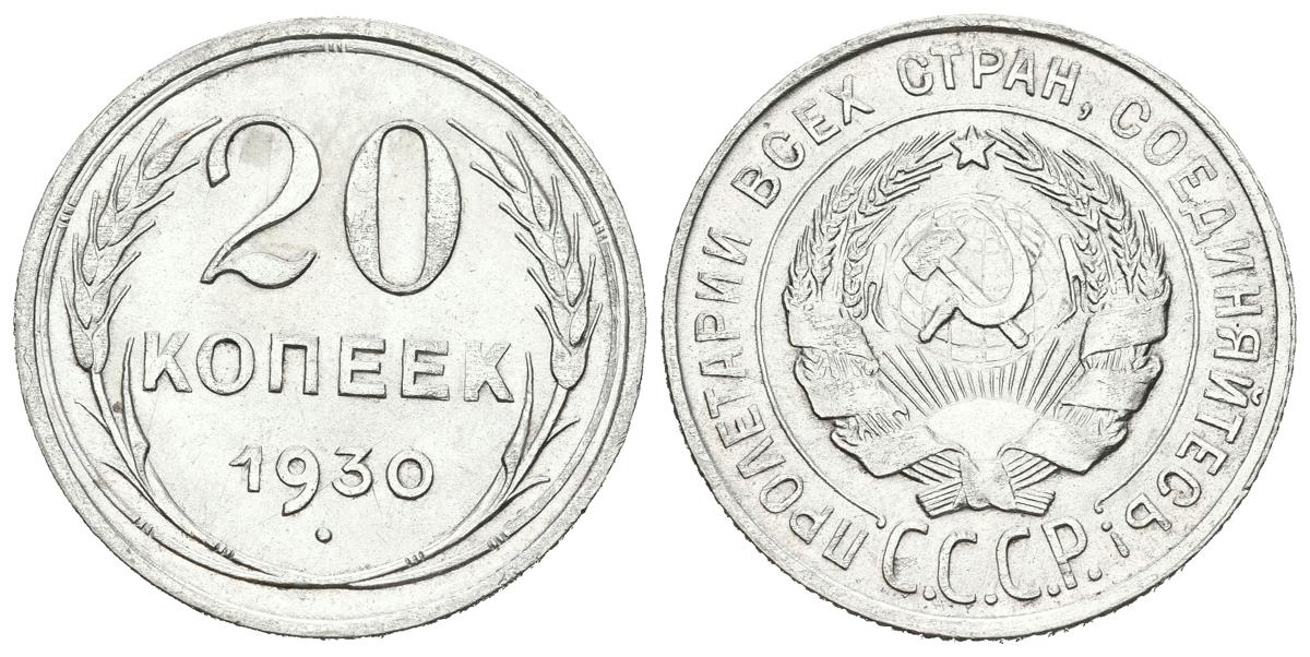 RUSIA (URSS). 20 Kopeks (Ar. 3,63g/22mm). 1930. (Km#88). SC-.