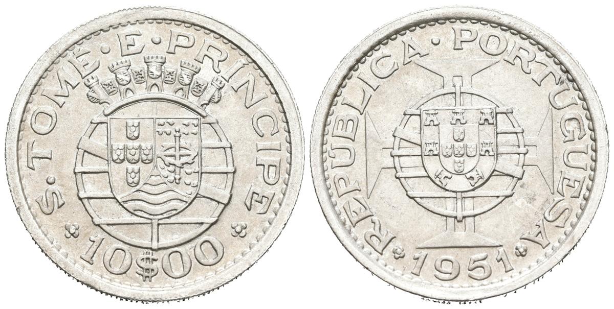 Santo Tomé y Principe (Portugués). 10 Escudos. (Ar. 12,41g/31mm). 1951. (Gomes 23.01). MBC+.