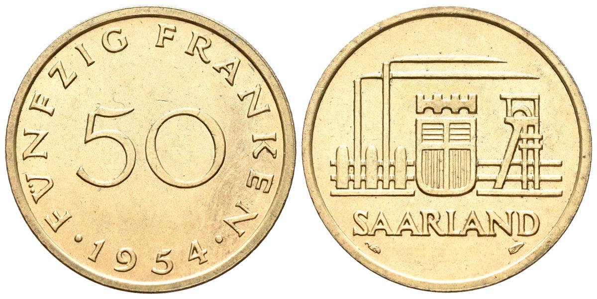 SARRE (Bajo control Francés). 50 Franken (Cu-Ni. 8,21g/27mm). 1954. Prueba. (Gad-3). EBC+.