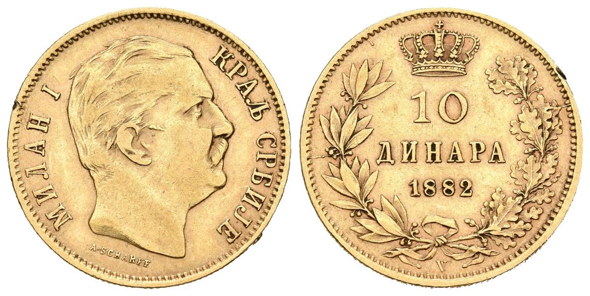 SERBIA. 10 Dinares (Au. 3,19g/19mm). 1862. Milán I (Km#16). MBC+.