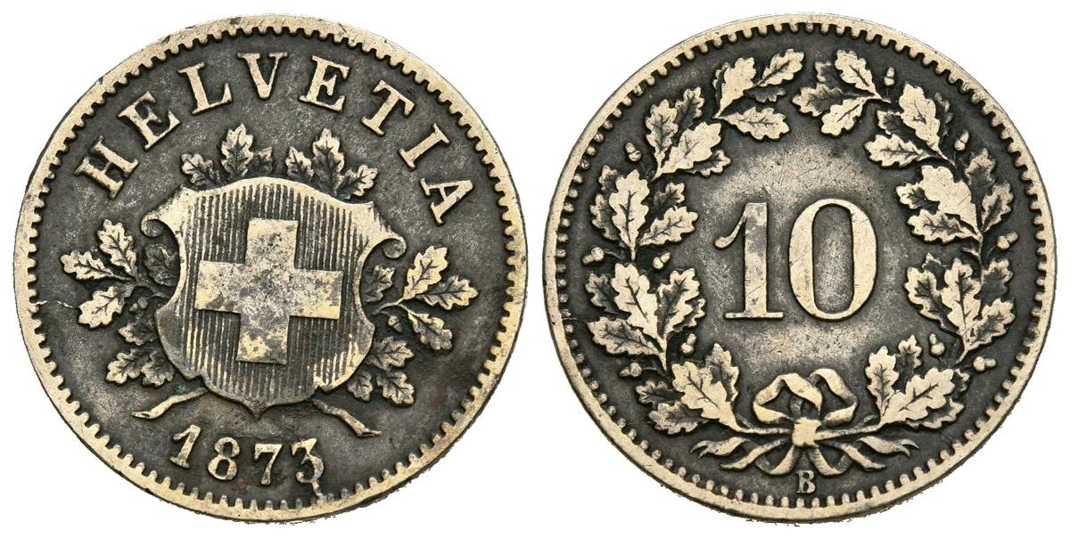 SUIZA. 10 Rappen. (Ve. 2,39g/19mm). 1873. Berna B. (Km#6). MBC.
