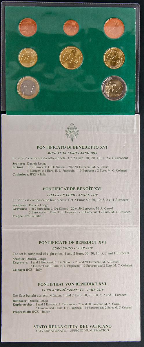 VATICANO. Cartera completa de 8 valores de Euros correspondientes al año 2010. Benedicto XVI. SC.