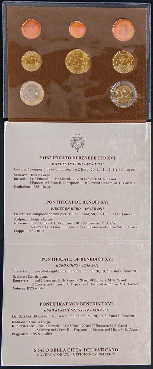 VATICANO. Cartera completa de 8 valores de Euros correspondientes al año 2011. Benedicto XVI. SC.