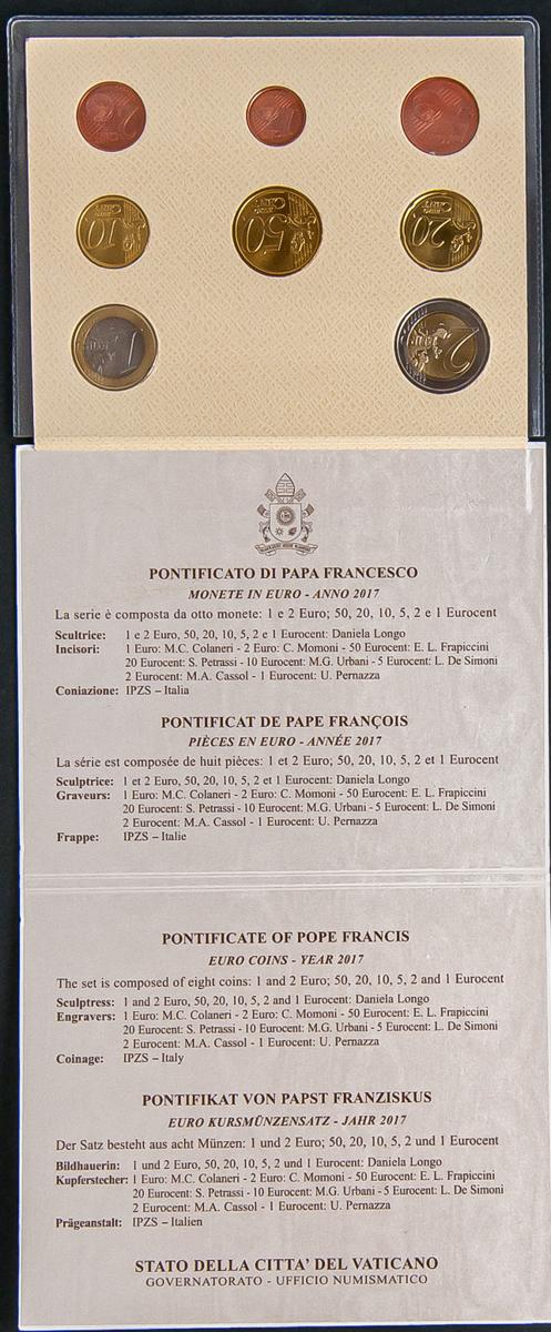 VATICANO. Cartera completa de 8 valores de Euros correspondientes al año 2017. Papa Francisco. SC.