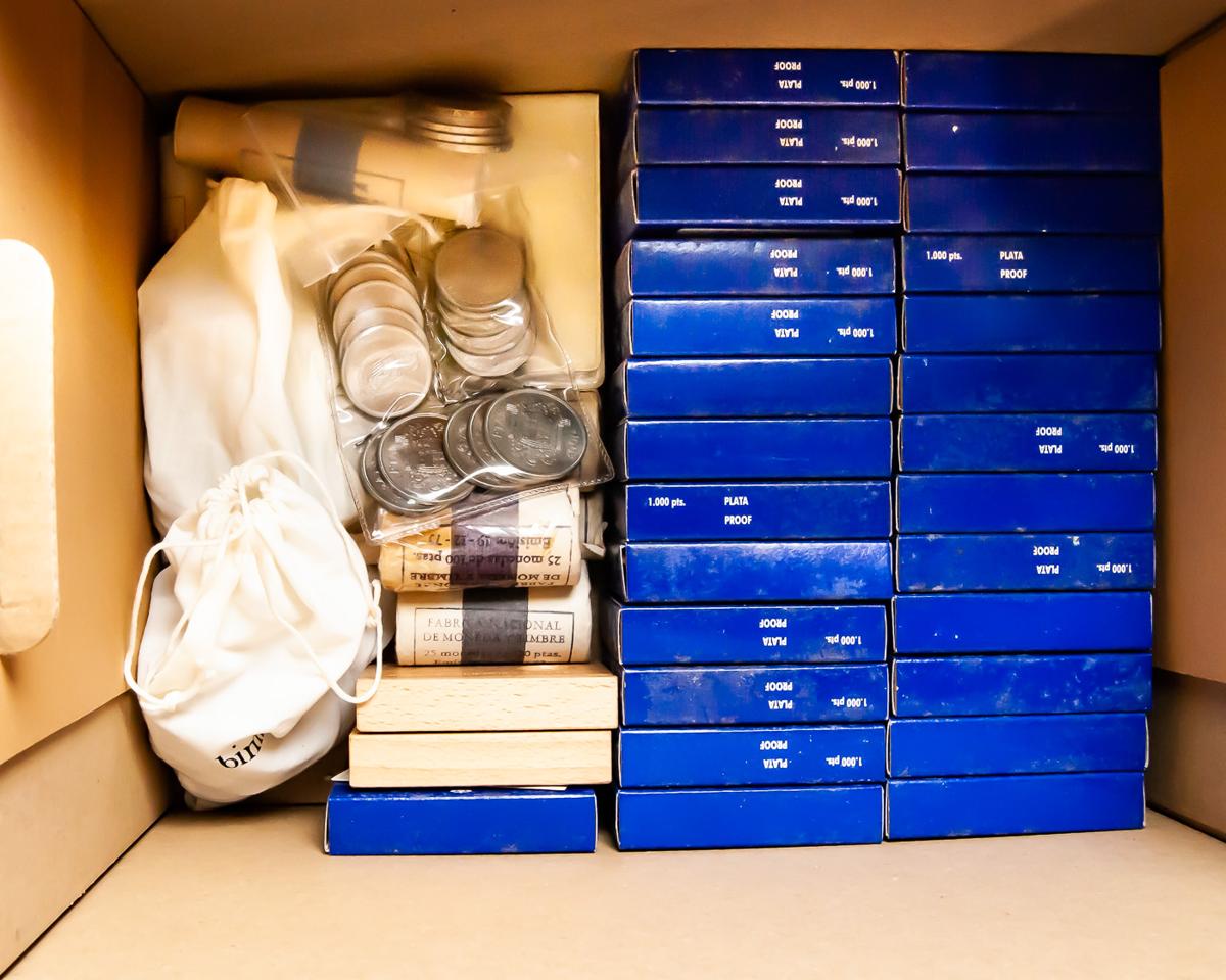 Interesante conjunto formado por cartuchos y carteras tanto del Estado Español como del reinado de Juan Carlos I. El conjunto se completa con 29 estuches oficiales iguales de 1000 Pesetas conmemorativas de los Juegos Olímpicos de 1996 que incluyen todos ellos el certificado de autenticidad. Peso total aproximado de la plata del conjunto: 450g. Diferentes estados de conservación, con una gran mayoría de piezas SC. A EXAMINAR.