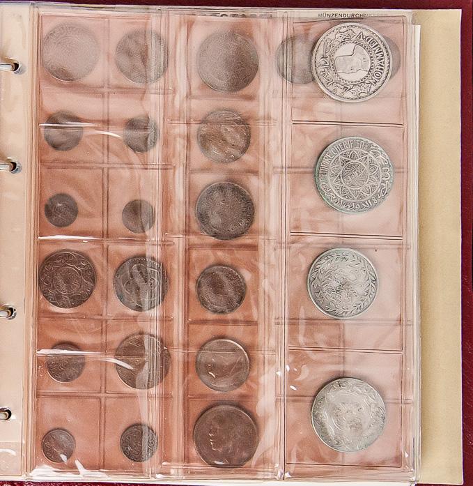 Interesante y amplia colección de moneda internacional formada por aproximadamente 350 piezas repartidas en 4 álbumes y acuñadas en diferentes países. Destacan un elevado número de ejemplares en plata de los siglos XIX y XX. Diferentes estados de conservación. A EXAMINAR.